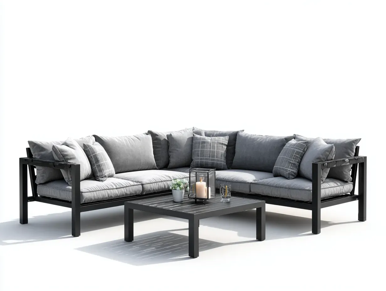Configurazione compatta ma confortevole, ideale per creare un'area relax definita. Struttura stabile, adatta ad ambienti esterni coperti o scoperti. Linee morbide ed estetica elegante per un inserimento armonioso nello spazio.